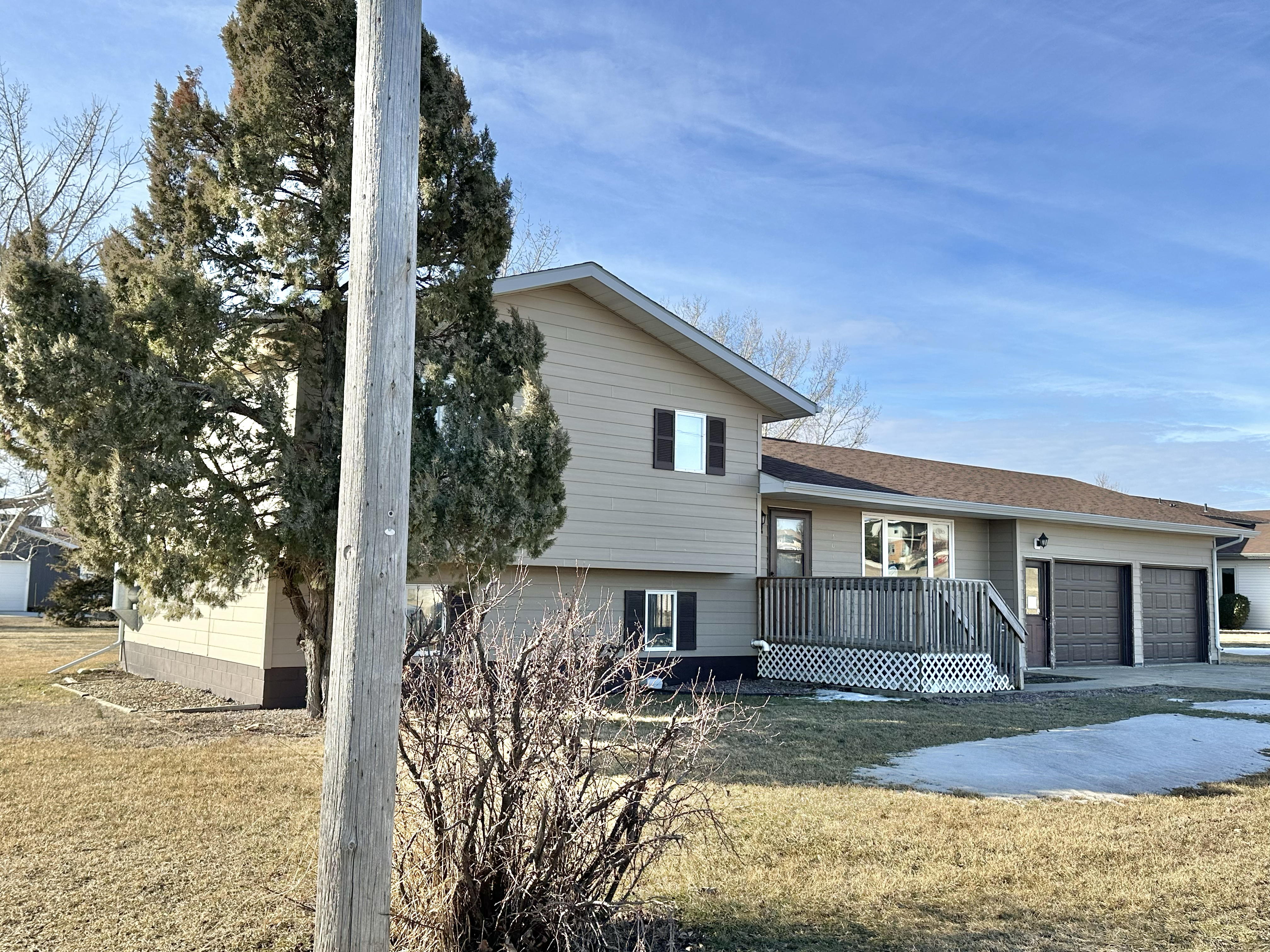 Check out this 1980 multilevel, three bedroom home of approximately 2,300 square feet located near the Jacobson Memorial Hospital, with another non-conforming bedroom on the lower level. The home has a 2-car attached garage and features a newly remodeled kitchen with newer cabinets, countertops, and kitchen appliances, including a dishwasher. Newer flooring runs throughout the kitchen, dining, living, and family room areas. The home has central air and a propane forced-air furnace with a 500-gallon tank included. Located on a larger 85 X 140 lot, offering lots of room to enjoy the outdoors. The back yard includes an 8 X 12 garden shed. Located at 307 4th Ave NE in Elgin, ND, for a price of $159,900. Call Colleen Vetter, Realtor @ 701.220.6585 or Martin Schock, Broker/Realtor @ 701.400.1401 to view this property.